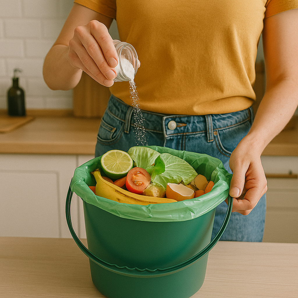 음식물 쓰레기 봉투나 통에 베이킹소다를 뿌리면 산성 부패물질을 중화해 냄새를 줄여줍니다.