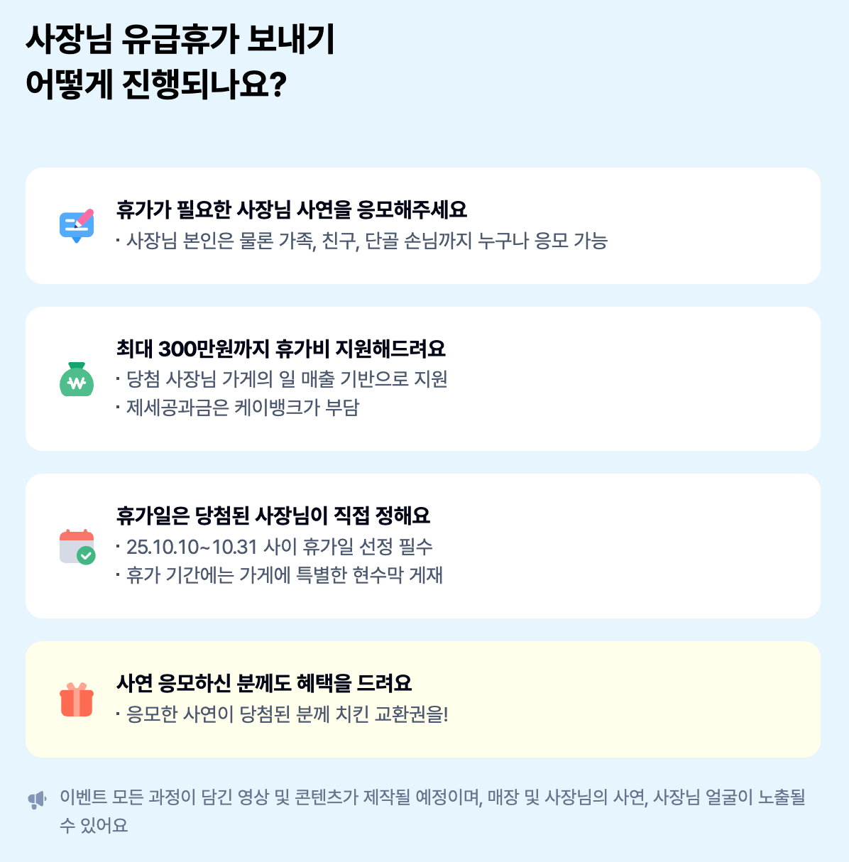 👉 휴가가 절실한 사장님이라면 직접 사연을 응모해보세요.